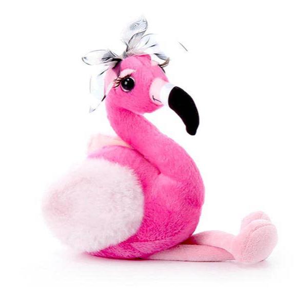Adorable eyelashes and a patterned bow on our Lash'z flamingo, make these cute stuffed animals for girls a fun friend for all ages. Made with high quality shed free fabric and durable stitching, this irresistible flamingo plush is designed to last through years of play. Lash'z come in a variety of styles ranging from zoo animals and sea life to plush dogs and cats, and even a unicorn, for toddlers to teens to collect.