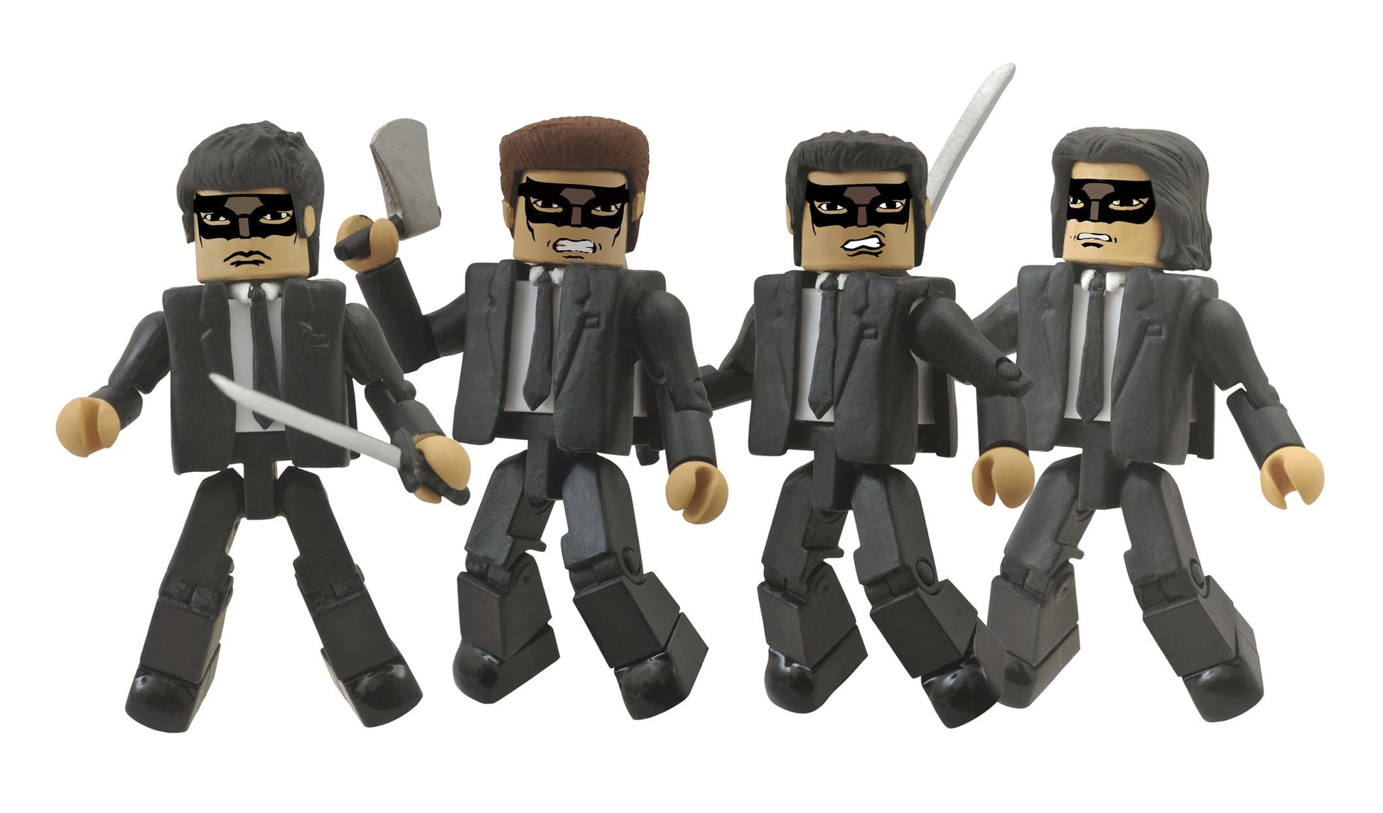 A Diamond Select Toys Release! This line of Minimates is about to get Crazy! Our first set of Minimates based on Quentin Tarantino's Kill Bill started the battle at the House of Blue Leaves, and now we're gonna finish it! This all-new box set includes four different Crazy 88 gang members, each with 14 points of articulation, plus interchangeable heads and hairpieces, to create different fighters from the film's epic swordfight. Mix and match multiple sets to re-create the carnage! Packaged on a blister card. Designed and sculpted by Art Asylum!