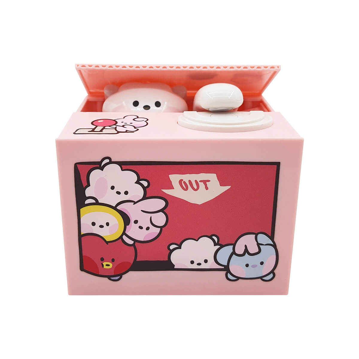BT21 minini's will keep your coins for safekeeping. Place a coin on top of the plate and watch BT21 snatch the coin with their hands. Batteries are not included.