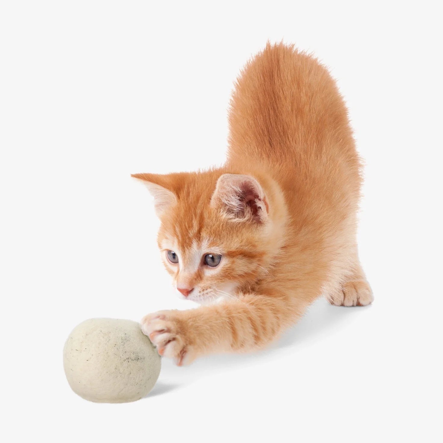 Since these balls are made of tightly felted wool, they are close to impossible to pull apart. On the off chance, your cat is clever enough to deconstruct their wool ball, no need to worry. They are made with undyed natural wool so there’s no harm to your Best Friend.