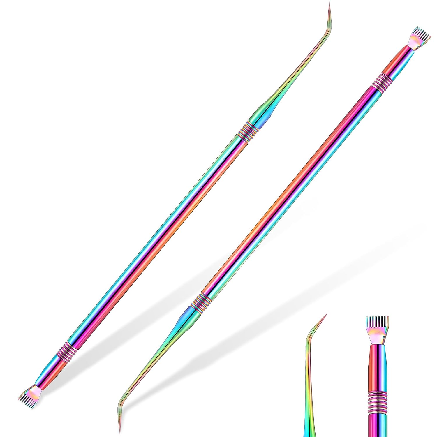 Chumia 2 Pieces Eyelash Lift Perm Tool Lash Separator Tint Tool Stainless Steel Metal Lash Lift Rods Tool for Eyelash Eyebrow Perming Tinting Curling Extensions Supplies (Multi Color,Comb)