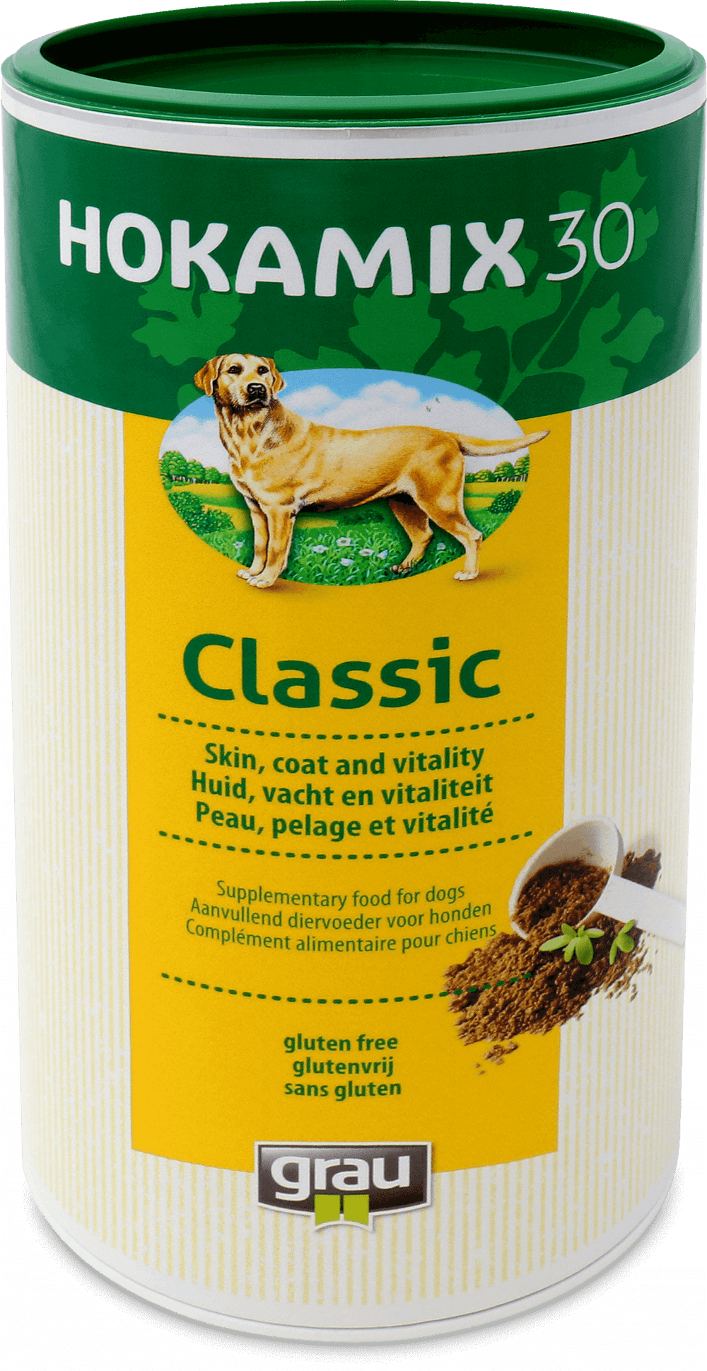 HOKAMIX Skin, Coat, Vitality is easy to supplement with the food of your dog. Do you feed kibble? If so you can soak this first in lukewarm water. You can also mix HOKAMIX through quark, yoghurt, or buttermilk. With the included measuring spoon you can easily measure the dosage.