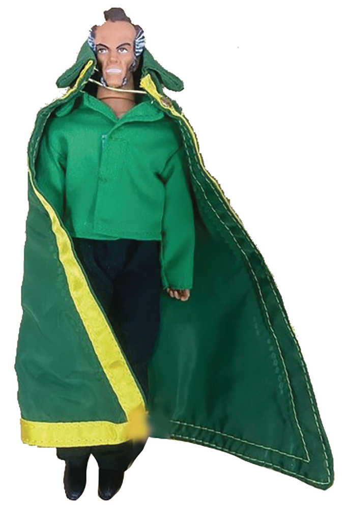 From Mego. Officially licensed and fully poseable, these dress-able figures feature 14 points of articulation and highly detailed fabric outfits! Standing about 8" tall, this New 52 Ras Al Ghul figure comes dressed in his green shirt, black pants, and cloak, and comes packaged with character specific accessories in a retro style blister card.