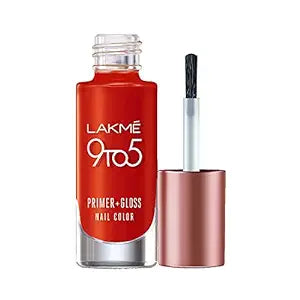 Lakmé 9To5 Primer + Glossy Finish Nail Colour, Cherry Red - 6 ml
