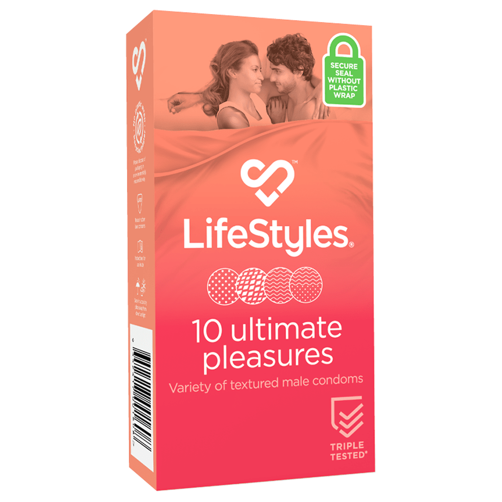 Ultimate Pleasures contain a variety of textured condoms designed to enhance stimulation and pleasure.