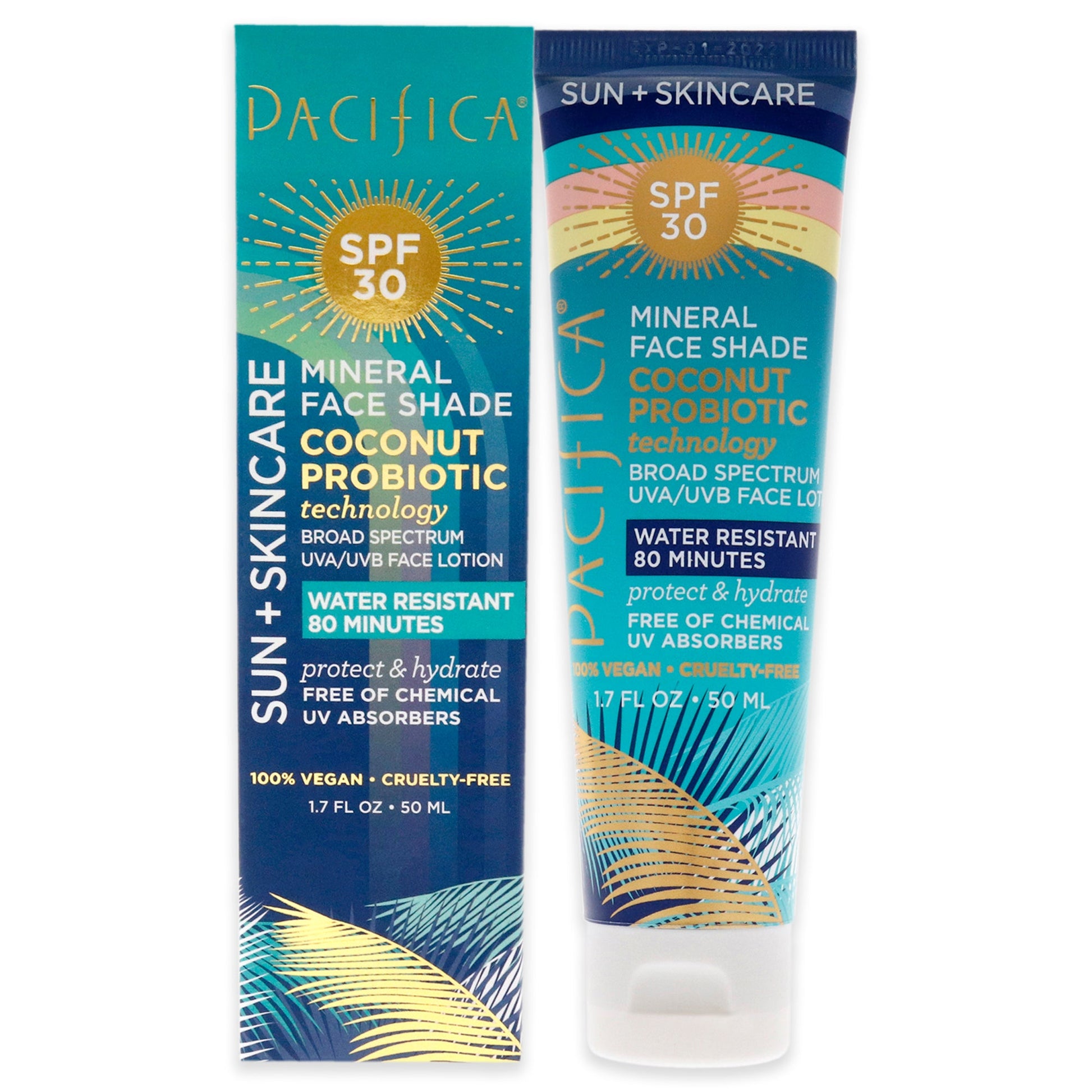 Surfer-approved. Pacifica Coconut Probiotic SPF 30 Mineral Face Shade with zinc oxide provides water-resistant protection with a sheer application. It is 100 percent vegan and free of chemical UV Absorbers.