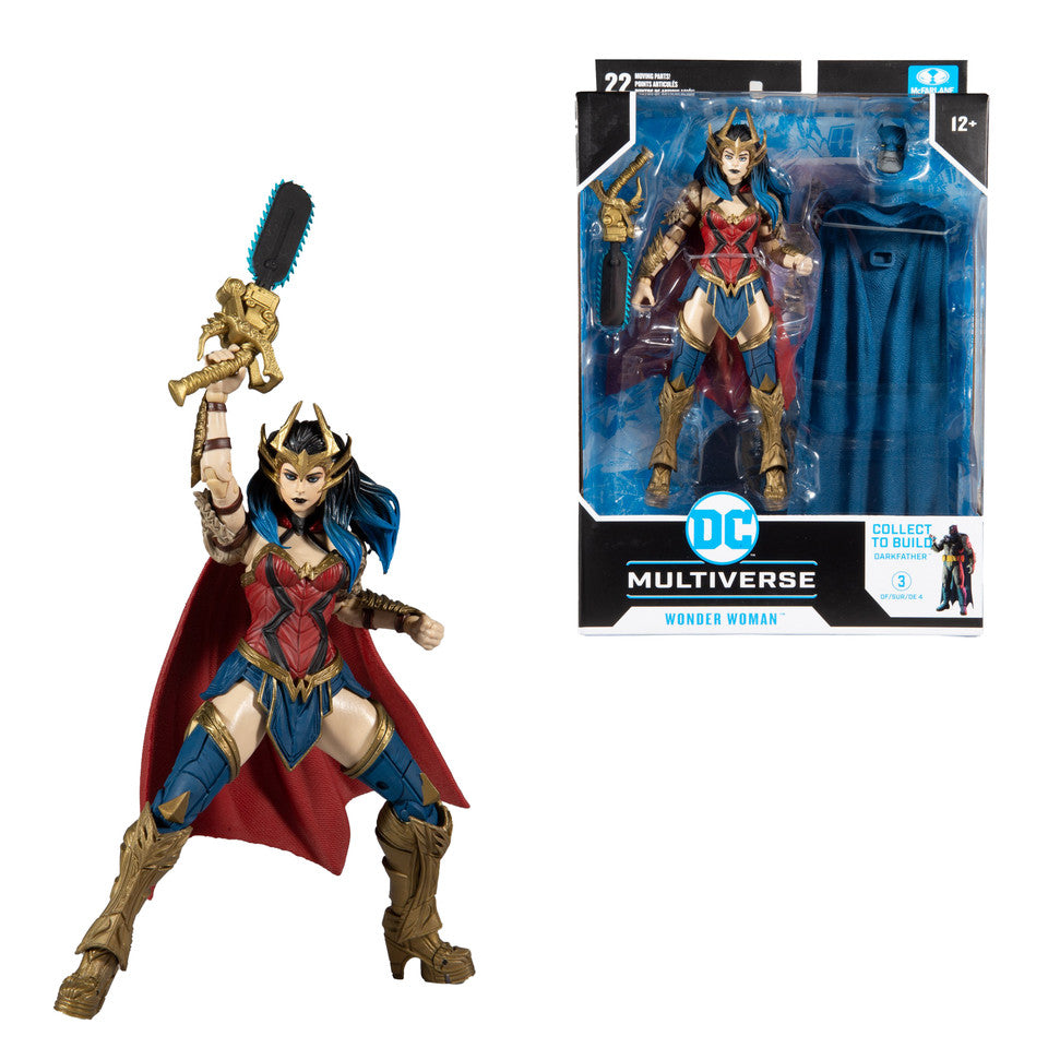 The DC Universe fell to the Darkest Knight and his allies in DC Comics' 2020 event Dark Nights: Death Metal, and McFarlane Toys brings fans a series of 7" scale figures based on the designs of fan-favorite artist Greg Capullo! The DC Universe: Death Metal Build-a-Figure 7-Inch Action Figures include incredible new versions of the Trinity - Batman with his guitar, Superman consumed by Anti-Life, and Wonder Woman with the Chainsaw of Truth - as well as the Robin King, a demented and evil version of the child Bruce Wayne from the Dark Multiverse. In addition to accessories, each figure comes with a build-a-figure piece to create an exclusive and chilling figure of the Darkfather Batman, a Batman who defeated Darkseid, ascended to godhood as a New God, and assumed the throne of the lord of Apokalips. Collect the DC Universe: Death Metal Build-a-Figure 7-Inch Action Figures and build your collection of McFarlane's dynamic DC Multiverse figures this summer!