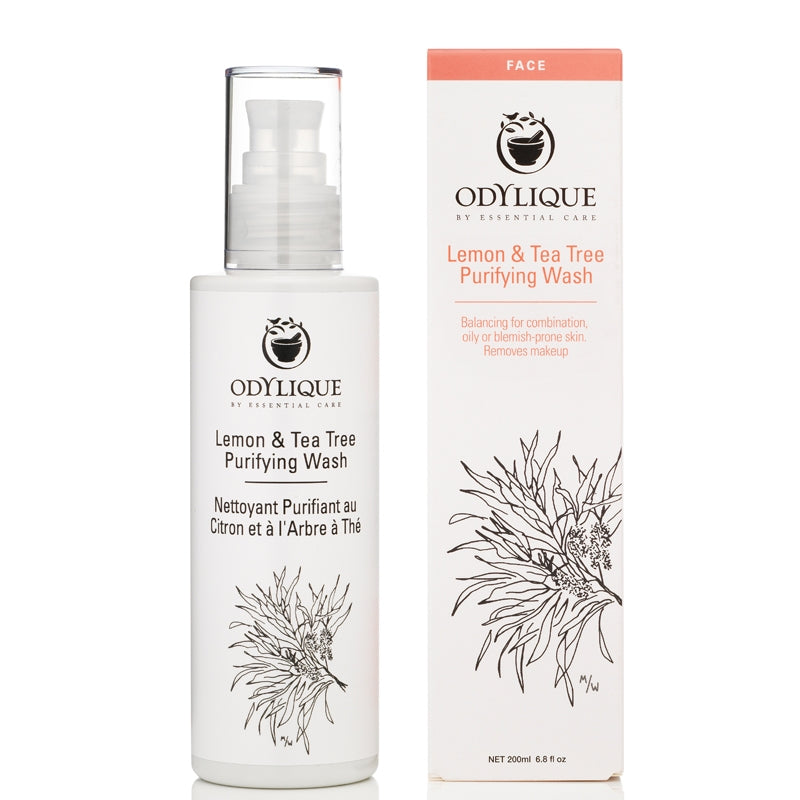 Odylique by Essential Care Lemon & Tea Tree Purifying Wash is a mild, antiseptic rinse-off cleanser that will leave your skin feeling clean, smooth and refreshed. With its blend of organic essential oils, including antiseptic Tea Tree, it is particularly suitable for people with normal to oily skin, and those with acne-prone skin as well.