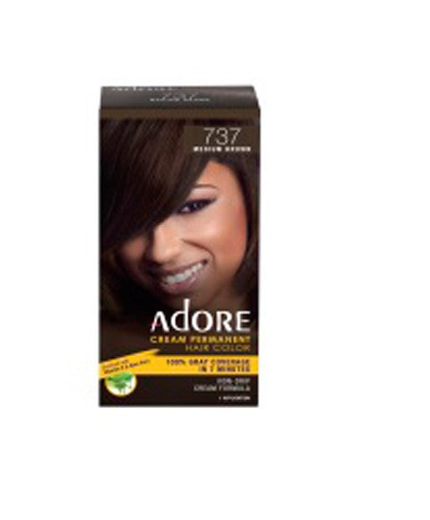 Creative Image Systems, Shinning Colors Adore Permanent are cream permanent hair colors that are enriched with Vitamin E and Aloe Vera. Gives 100 % gray coverage in seven minutes. This non drip cream formula is more then enough for one application. Nutrient rich conditioners protect hair against dryness and penetrate hair with rich long lasting beautiful color, hair soft and silky.