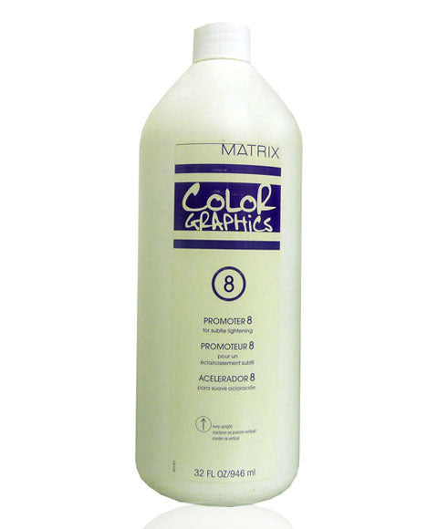 Matrix Color Graphics Promoter 8 for Lightening is for subtle lightening to lighten up the hair colors. • Provides 1-4 levels of lift. • For use with Colorgraphics Lift and Tone Powder Lifter and Toners.