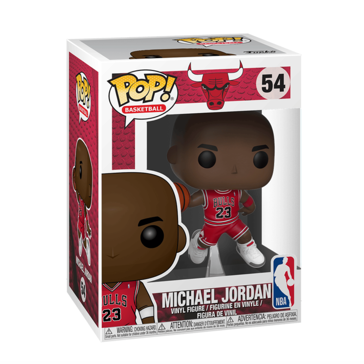Your basketball collection won't know what hit it when you bring home this Michael Jordan Pop! Vinyl. Michael is in his red Chicago Bulls jersey for this epic, mid-air figure of the basketball star. Collectible stands approximately 3.75-inches tall.
