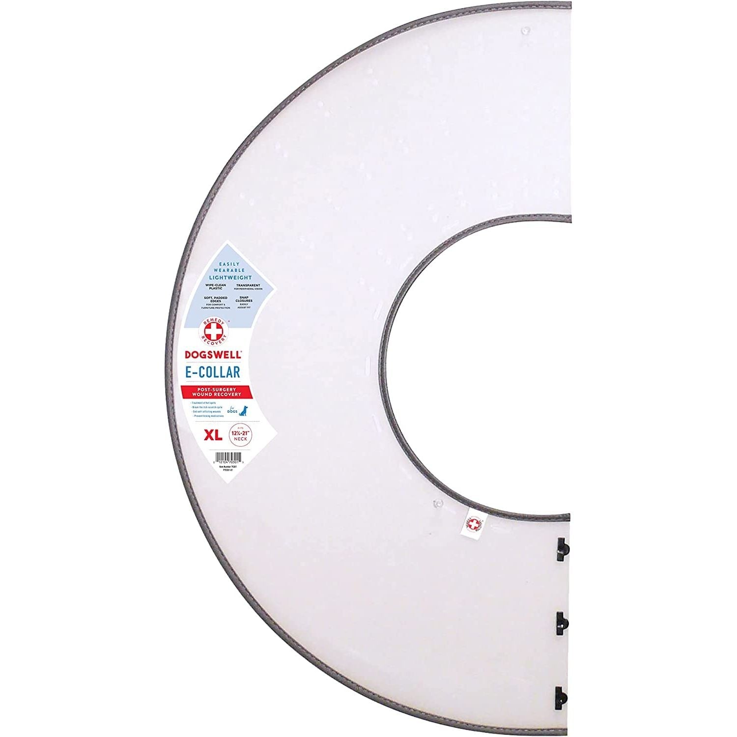 This E-Collar's rigid design makes it the most effective in preventing the animal from reaching wounds during periods of recovery. Dogswell® Remedy + Recovery® Rigid E-Collars are perfect for post-surgery or wound recovery, treatment of hot spots, breaking the itch-scratch cycle, helping your pet stop licking medication and end self-inflicting wounds. Our soft padded edge design and lightweight material makes this product comfortable for your pet and helps to protect your furniture.